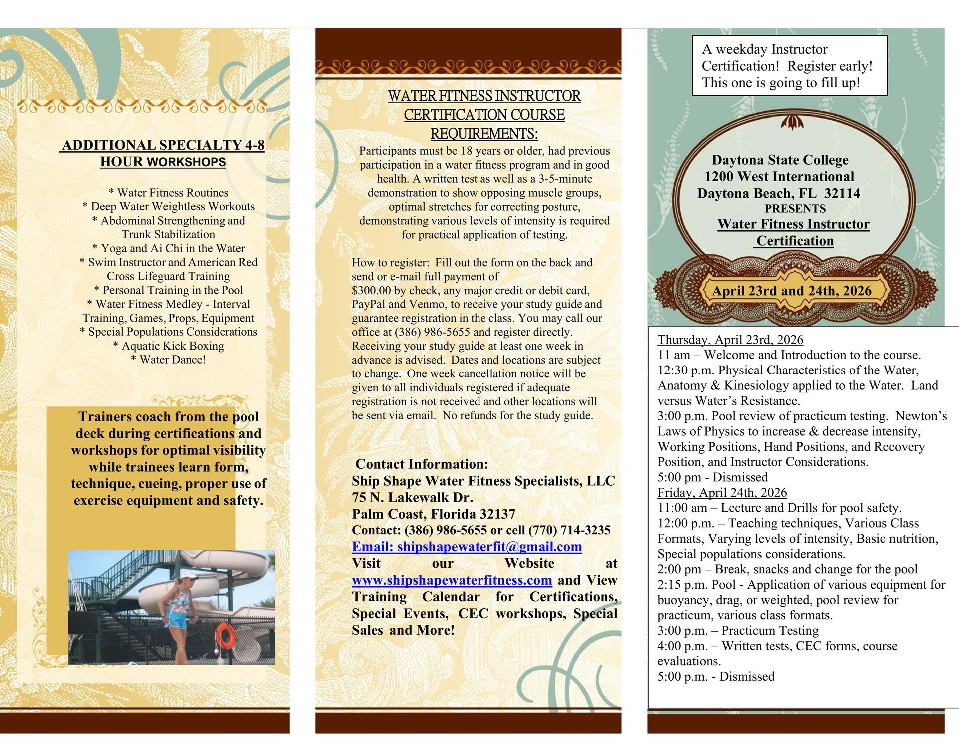 Ship Shape Water Fitness Specialists LLC’s Water Fitness Instructor Training Program is second to none